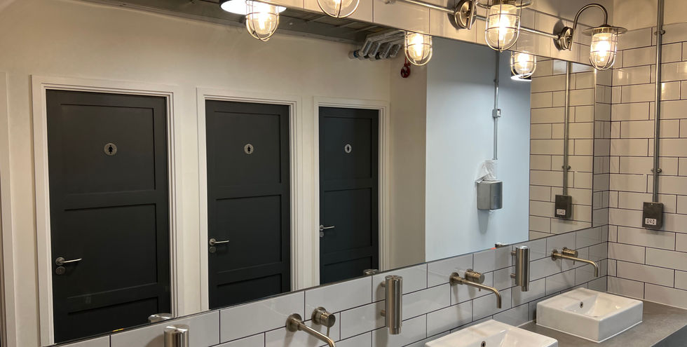 Concrete was used to create an in-situ basin worktop and was polished to a high gloss finish. New timbers doors, ironmongery were supplied and fitted, to the entrance of the WC and to the toilet cubicles. An accessible WC and shower were added to the facilities, accompanied by specified fixtures e.g. mirror, brushed stainless steel shower and taps.